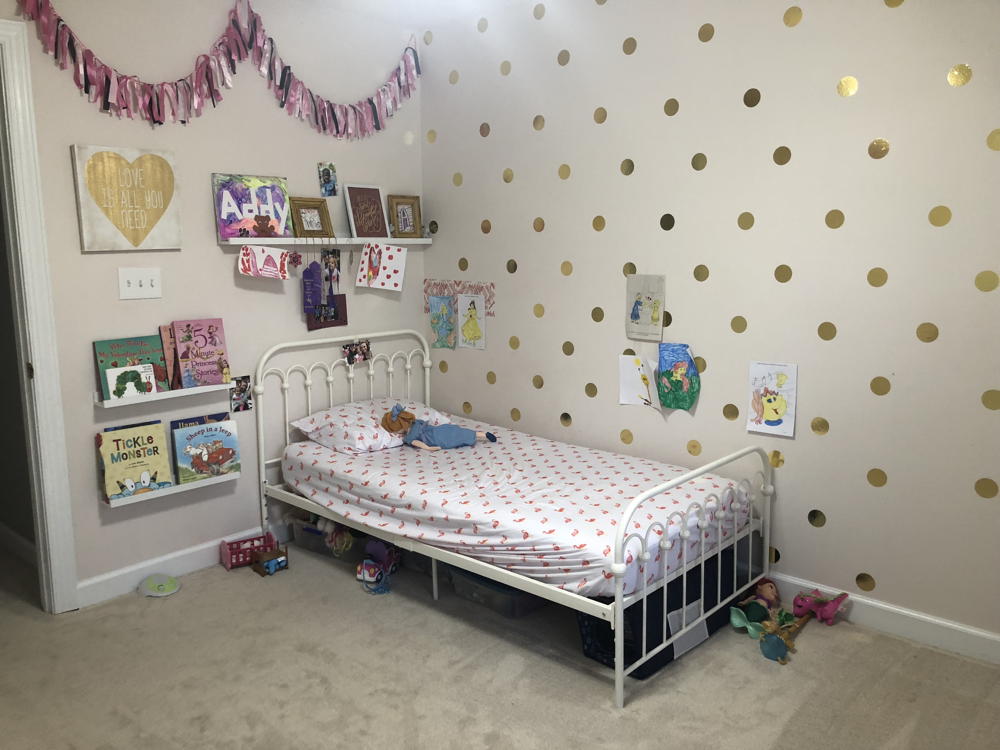 Truth be told, I’ve been collecting little things for this room for MONTHS. Whenever I saw something cute I would snag it and store it for later in the closet. I was SHOCKED to find that everything I’d picked up along the way found a spot in the room!