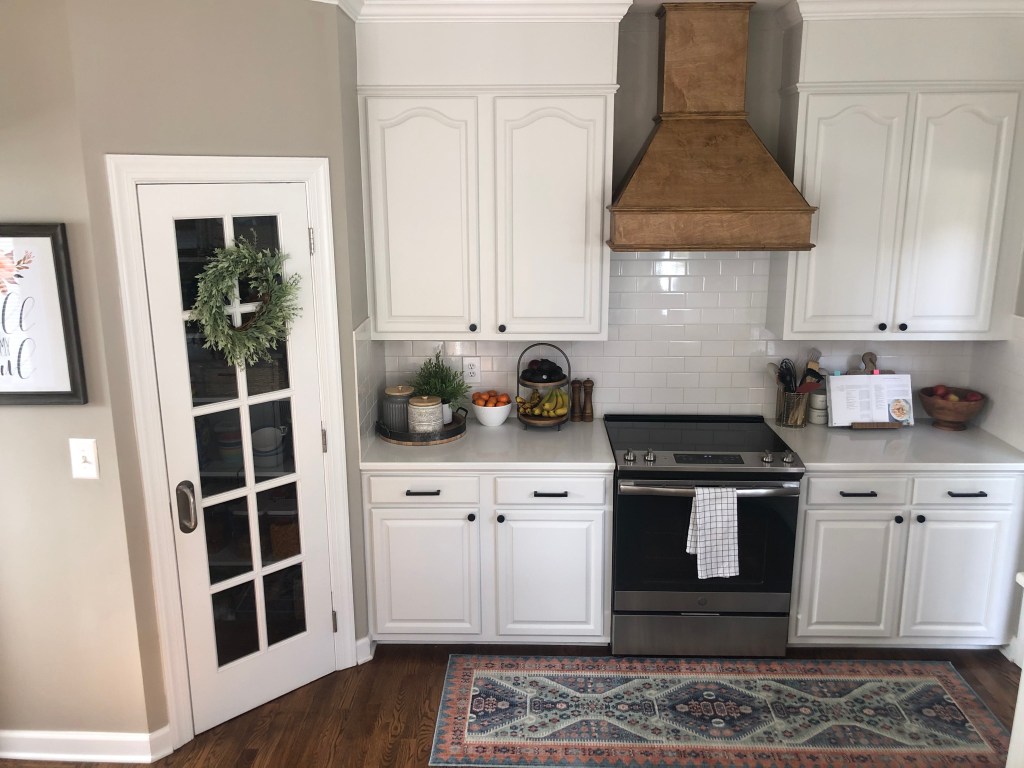 And lastly, we put in a new vent and built a big wood hood around it! I love how this turned out (the microwave was moved to our butler’s pantry).