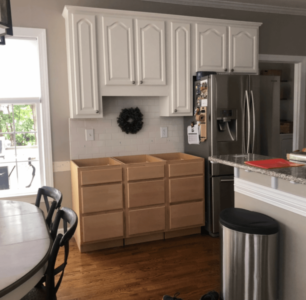 I also took down all the cabinet molding and built the cabinets up to the ceiling. Then I primed and painted it to match cabinets. (I didn’t know this would make such a big difference!)
