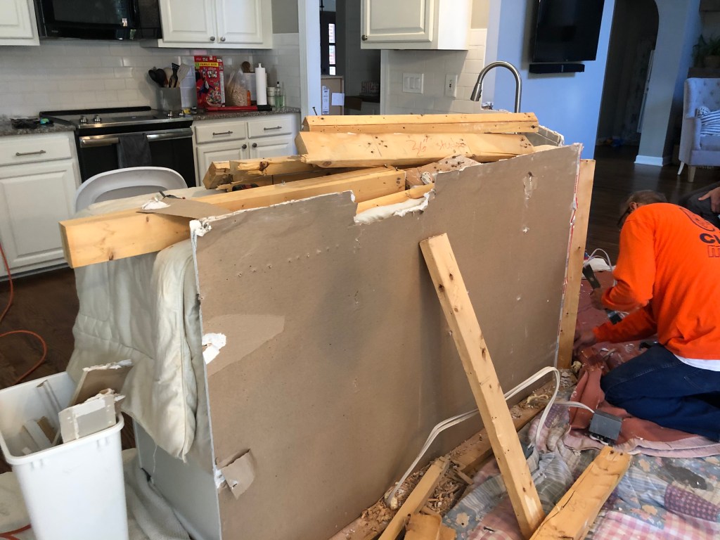 Then I took down the middle cabinets and did some built in shelves. Excuse the mess. 🙂