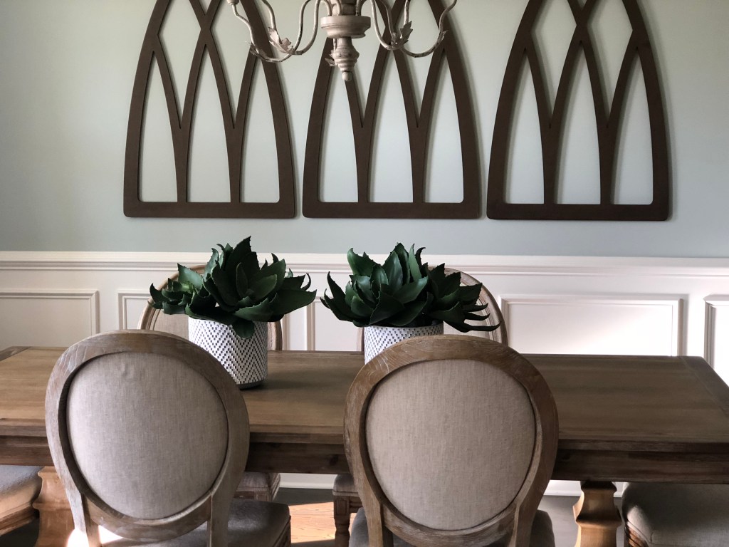 I LOVE how this room turned out. (it’s almost done…still waiting on a light fixture to finish it up!) I helped choose a table and chairs for this new dining room. And my favorite find this season….these curtains are just the best! I love that even though this client lives out of town, with pictures and FaceTime calls, we could work it out from afar!